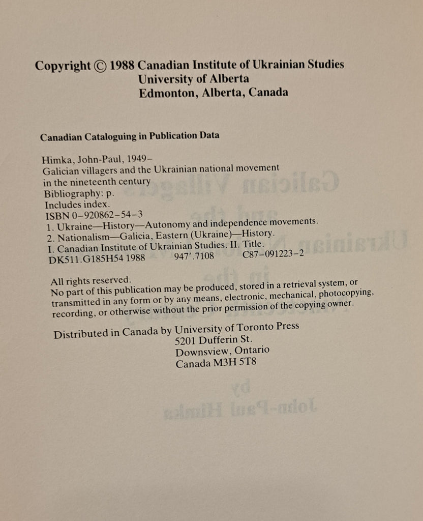 Galician Villagers and the Ukrainian National Movement in the Nineteenth Century