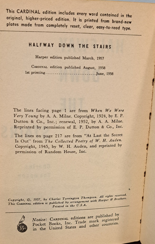 Good minus. Binding tight. Cover and pages bright. Some gentle wear on front cover and spine, even less on back cover. Some light creasing on spine and on covers near spine. Top right corner worn/chewed away through cover and into text block, goes through about half the book. Stamp from previous bookseller on front end page, title page, summary page, and upper text block.