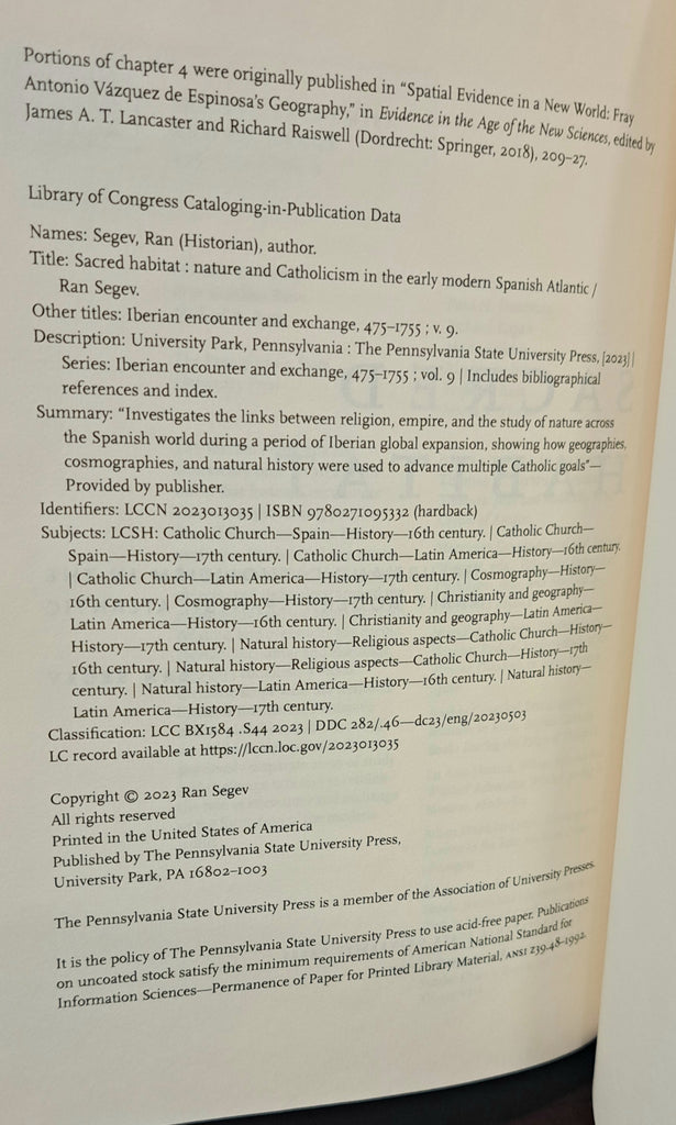 Sacred Habitat: Nature and Catholicism In The Early Modern Spanish Atlantic