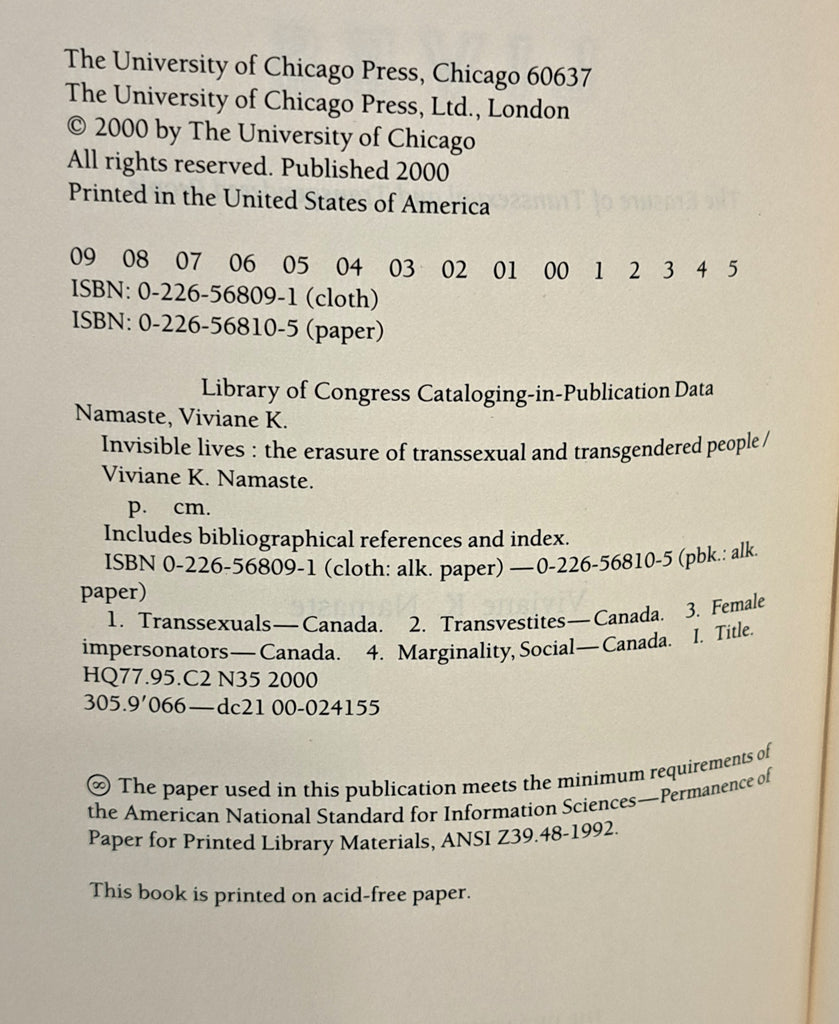 Invisible Lives: The Erasure of Transsexual and Transgendered People