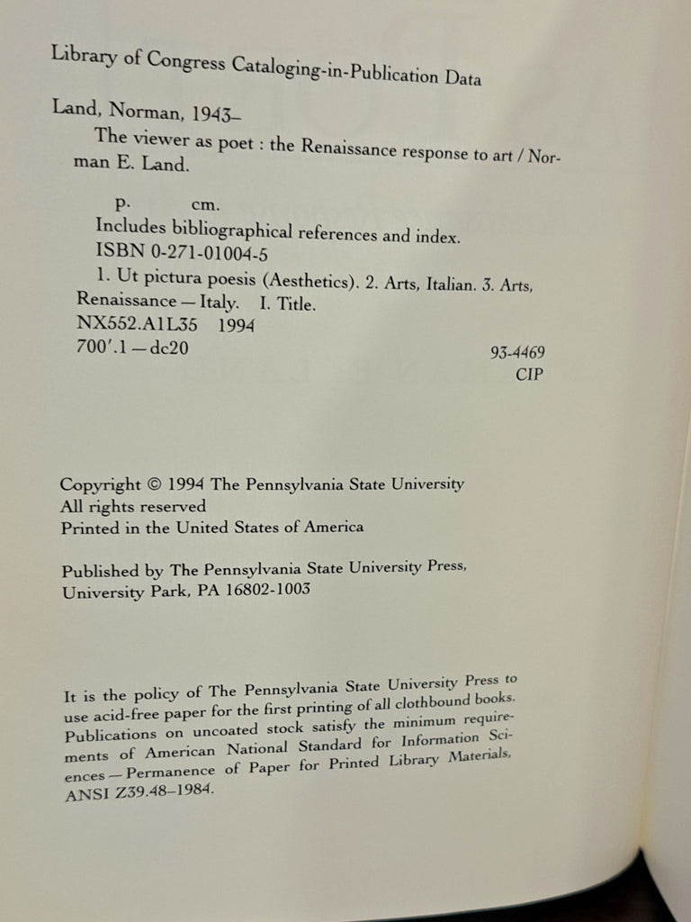 The Viewer As Poet: The Renaissance Response to Art